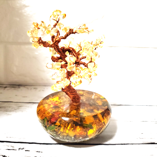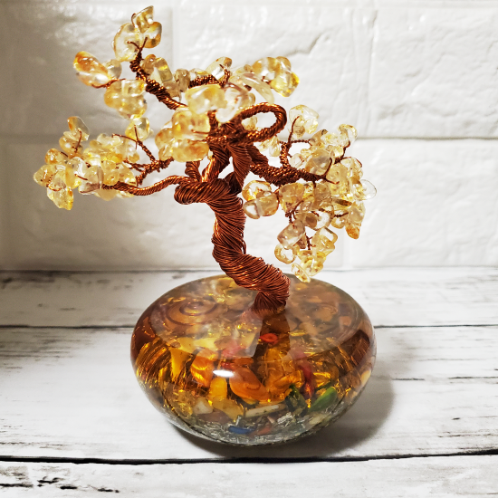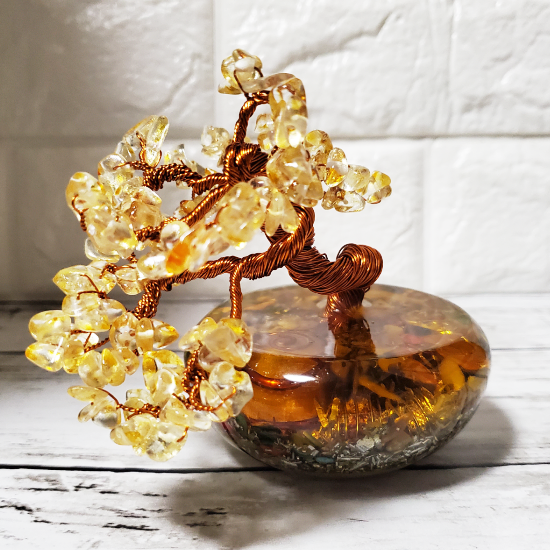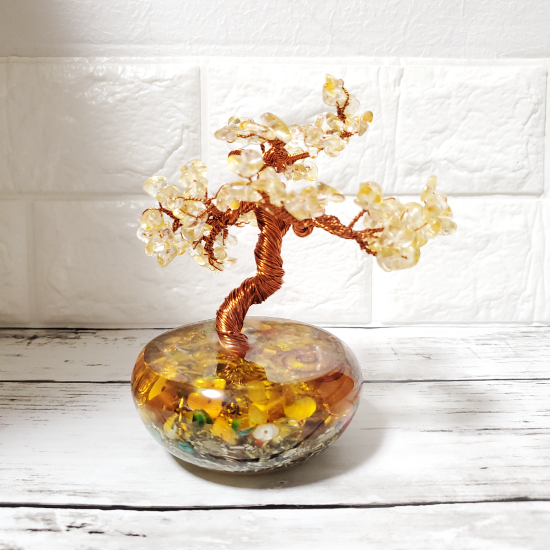 NEW オルゴナイト BONSAIには、パワフルなエネルギーを秘めたシトリンが使用されており、石の持つポジティブな波動が周囲に広がります。その効果は世界中で平和な雰囲気をもたらし、心を安らかにし、集中力や創造力を高めると言われています。