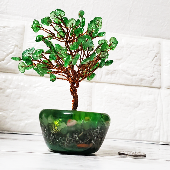この小さなミニサイズのオルゴナイトツリーが、デスクやリビングルームの一角に置かれることで、